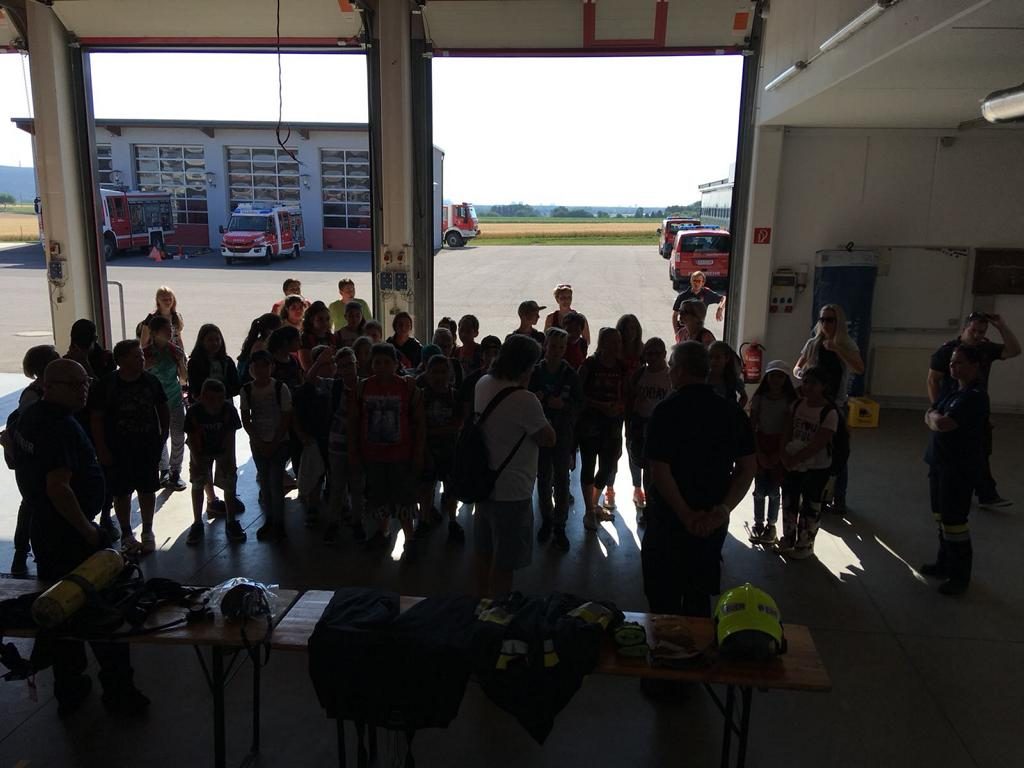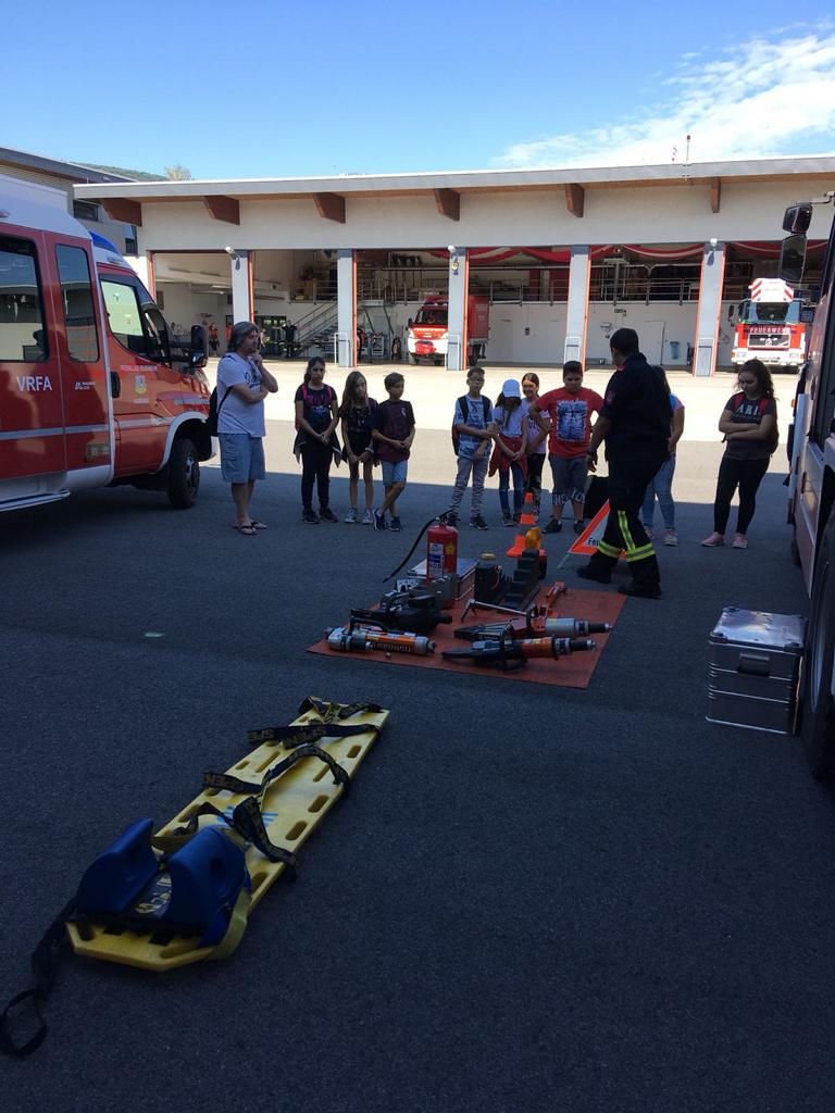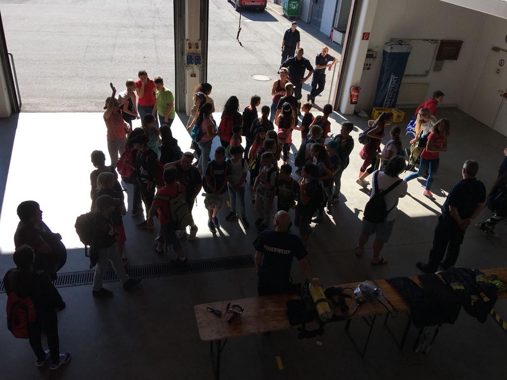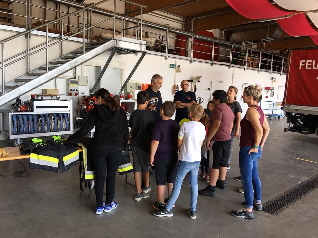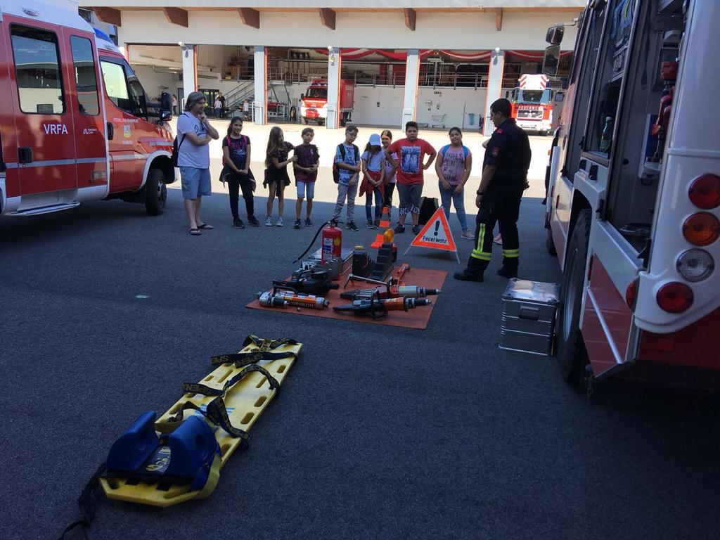 Neben einem Rundgang durchs Feuerwehrhaus, wurden natürlich auch die Geräte und die Fahrzeuge präsentiert. Die Geräte konnten von den Kindern selbst bedient werden und in den Fahrzeugen herumgeklettert werden.