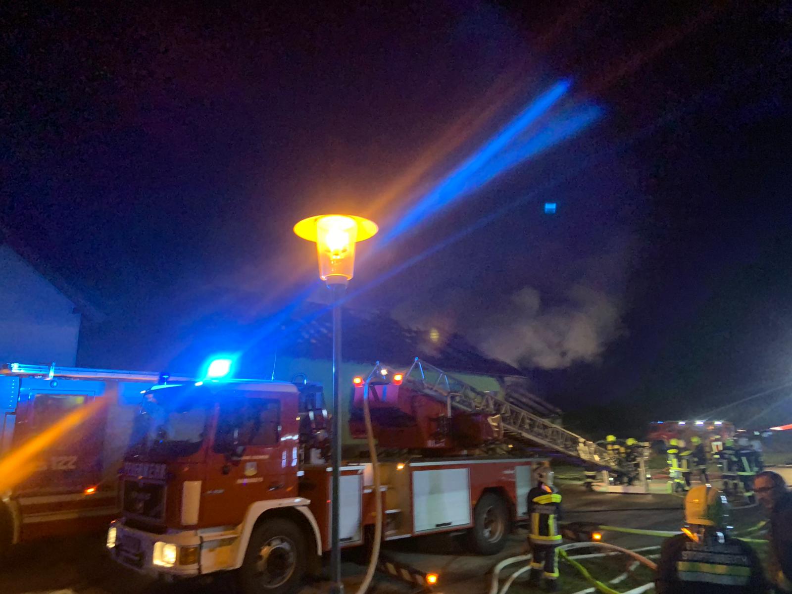 Am 11.10.2019 wurden wir gegen 3 Uhr früh zu einem Dachstuhlbrand nach Stopfenreuth alarmiert.